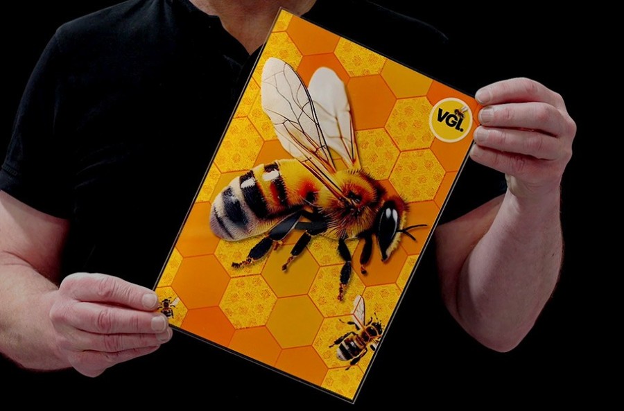 Droptix technology uses a sophisticated method to deposit clear, resin-like droplets on printed graphics, acting as tiny lenses that magnify light and create a 3D illusion. In this specialised printing technique a clear, glossy coating is applied to select areas or the entire surface of a print. This coating directs light to create an illusion of depth and movement, enhancing the dimensionality of the image.